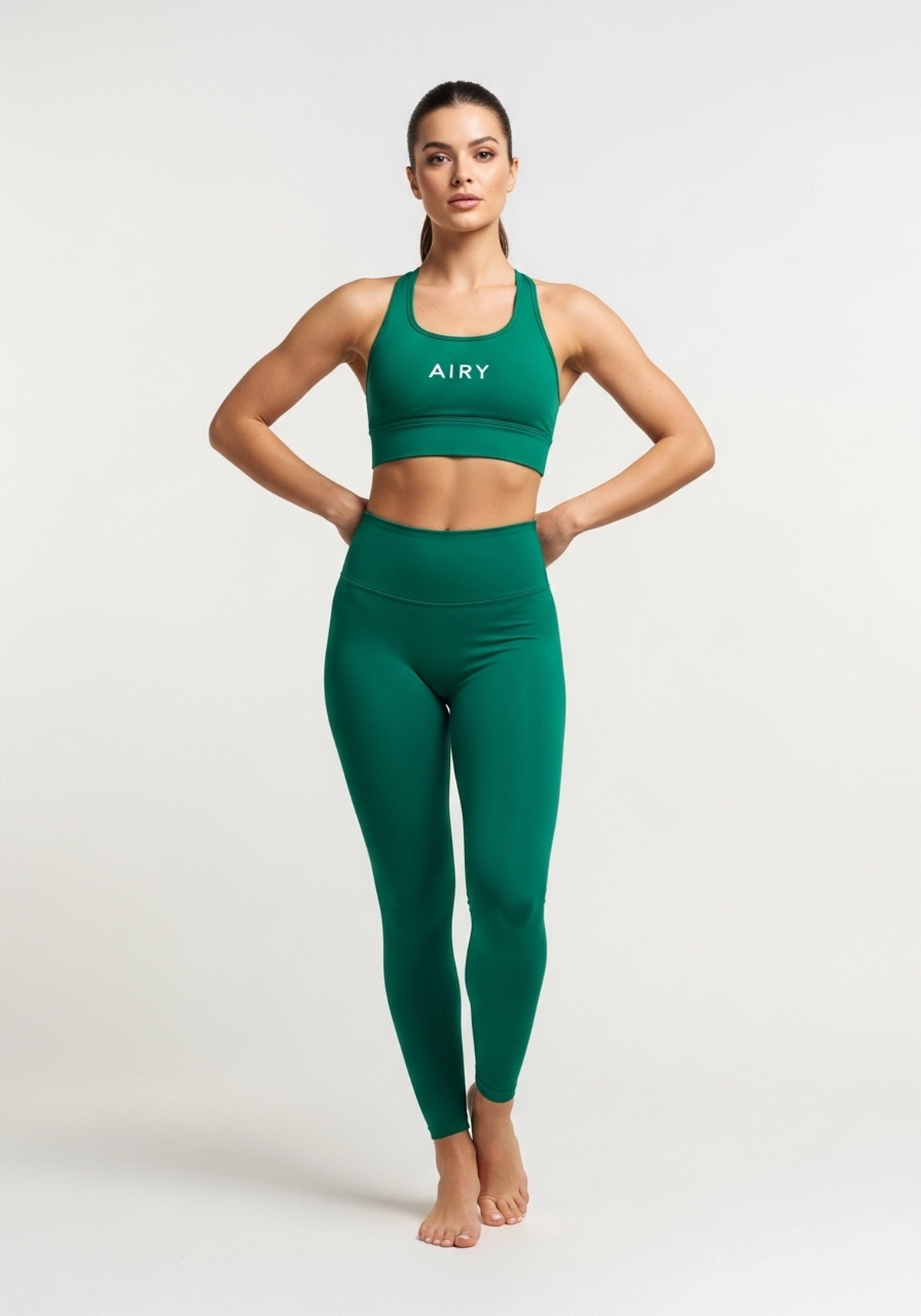 O Conjunto Fitness Airy Emerald Flow combina sofisticação e desempenho em um conjunto pensado para acompanhar cada movimento com conforto e elegância.